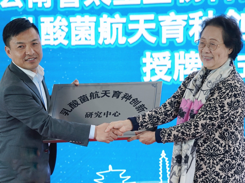 云南省科技厅相关领导、大理州人民政府相关领导、云南省太空生物科技发展促进会主要领导、大理国家级经济技术开发区管委会分管领导、大理市各主要部门领导、大理镇各主要部门领导、皇氏集团股份有限公司领导、云南皇氏来思尔乳业有限公司员工代表,共同迎接顺利从太空凯旋归来的皇氏来思尔22株航天菌种回家。 航天菌种交接仪式正式开始前,皇氏集团股份有限公司董事长黄嘉棣上台对本次到场嘉宾进行了欢迎致辞。黄董郑重表态,“我们将举全公司之力,调集优势资源,借助集团的技术平台,全力以赴开展搭载返回菌株的后续研究,力争以最快的速度、最高的效率筛选出罕见突变菌株,开发真正具有核心技术优势的‘中国芯’优良乳制品,引领企业实现转型升级和跨越发展,为大理州乳业的高质量发展和打造世界一流的云南高原特色‘绿色食品牌’作不懈努力。” 谈及将皇氏来思尔乳业的22株菌种送往太空的原因,大理白族自治州人民政府副州长雪琳表示,云南皇氏来思尔乳业作为不断探索“国民菌种”的民族企业,不仅屡获国内重大荣誉称号,航天菌种更是大理州的骄傲。此次皇氏来思尔乳业携手中国航天培育“航天菌种”,既为促进种业创新、推动云南高原特色现代农业发展贡献了大理力量,也将为我国的益生菌研究带来宝贵经验,为国产益生菌育种事业产生深远影响。希望皇氏来思尔乳业借助航天菌种研究成果,助力大理州百亿级乳业产业打造,加快推进大理州乳业创新发展、绿色发展、高质量发展。 云南省科技厅二级巡视员王立新也对皇氏来思尔航天育种项目及后续研究对于我国育种事业的重要意义进行了重要发言。皇氏来思尔自主选育的22株饱含民族优秀文化、极具高原特色的优质乳酸菌菌株搭载神舟十二号遨游太空,开启诱变之旅,相较于国外菌种和产品,拥有“中国芯”的皇氏来思尔乳业,正以实际行动践行国家对于把民族种业搞上去、实现种业科技自立自强、种源自主可控的殷殷嘱托。希望皇氏来思尔加大研发投入,推进以科技创新为核心的全面创新,不断提升核心竞争力,向着更高、更快、更强的目标迈进。