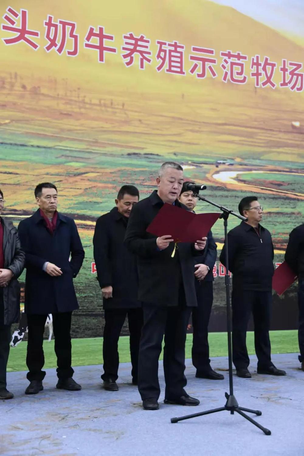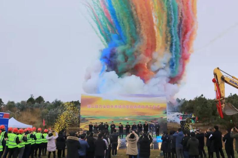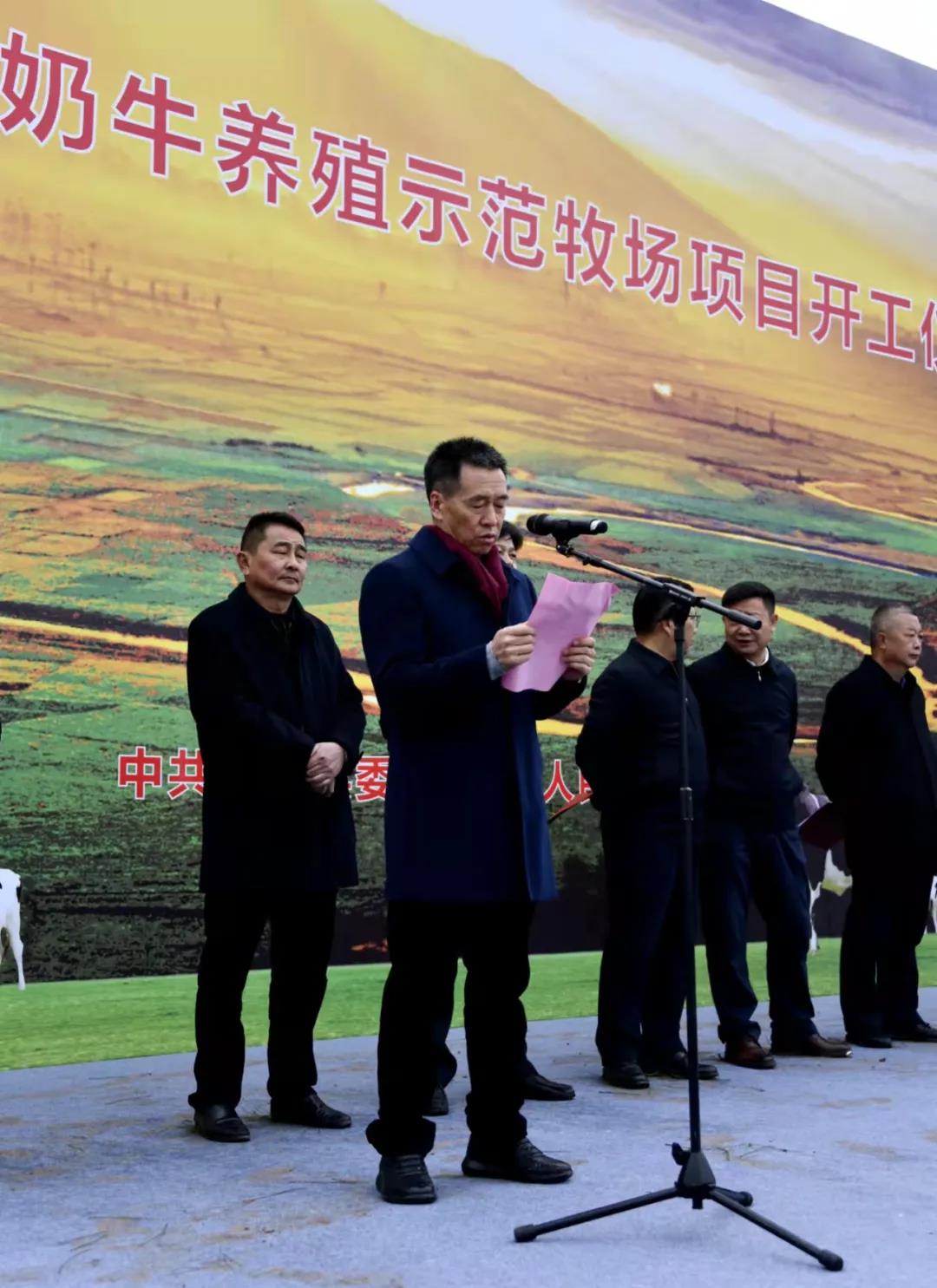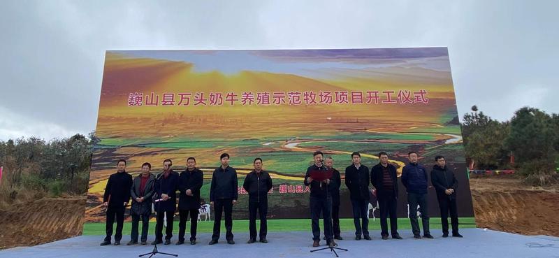 巍山县委副书记、县长字文源主持仪式并指出,项目开工是巍山县迈好“十四五”现代农业发展的第一步。字文源强调,巍山县各级相关部门,要紧紧围绕县委、县政府统一安排部署,切实增强推进项目建设的责任感和使命感,以务实的作风、创新的举措,以只争朝夕的紧迫感,继续加强与州工投公司、皇氏来思尔乳业有限公司的对接联系、做好企业服务,快速推进林地流转报批、规划设计、设施农用地办理、水电路基础设施配套等各项工作落实,确保项目早日建成投产发挥效益。 随后,巍山县政协党组书记张绍平作了发言,他强调,项目和产业是推动发展的“牛鼻子”,巍山县将把万头牧场的建设作为答好“大理之问”巍山答卷的有力抓手,按照州委、州政府的部署要求,全力抓好万头奶牛养殖示范项目。严格实行挂图作战机制,按照“逆战法、近战法、倒逼法”,制定时间表、路线图,加快推进项目规划设计、项目征地、林勘设计报批等工作,全力做好项目要素保障和服务工作,全面保障巍山县万头奶牛养殖示范牧场项目建设。 巍山县人民政府副县长王晓龙对项目基本情况作了介绍,该项目规划集中养殖区用地1060亩、隔离缓冲种植用地2000亩、优质饲草饲料种植基地20000亩,项目概算总投资约5亿元,到2025年牧场建成后,将存栏奶牛10000头,年产优质生鲜奶6万吨,加工乳制品实现的销售收入预计达6亿元。 大理州工投总经理唐仕新发言表示,州工投集团将以今天的开工仪式为契机,在巍山县委、县人民政府的关心支持下,与皇氏来思尔一道共同努力,积极整合各方资源,强化责任担当,细化工作措施、压实工作责任,确保高标准、高质量完成巍山县万头奶牛养殖示范牧场项目建设工作,确保按时将牧场交付乳企使用,为大理州百亿乳业产业发展奠定坚实基础。 皇氏来思尔乳业副董事长董建升进行了表态发言,董总表示将举全公司之力,全力以赴配合州委州政府、州工投及巍山县政府各级部门开展项目建设,确保巍山万头奶牛牧场早日投入运营,充分发挥皇氏来思尔作为农业产业化国家重点龙头企业的优势,将牧场打造为大理州万头奶牛示范牧场,为大理州乳业高质量发展和打造大理州世界一流“绿色食品牌”作积极的努力! 仪式最后,州政府党组成员、一级巡视员吉向阳宣布项目正式开工。 大理州政府党组成员、一级巡视员吉向阳、巍山县委副书记、县长字文源、县人大常委会主任彭彬、县政协党组书记张绍平、副县长王晓龙、大理州工投总经理唐仕新、大理州农业农村局、州工信局、州林草局、州乡村振兴局、巍山县农业农村局、皇氏来思尔乳业副董事长董建升、总经理马万平、奶源发展总监张岳光等参加了开工仪式。