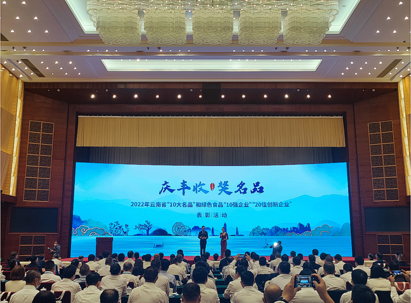 2022年9月23日,云南省打造世界一流”绿色食品牌“表彰会议在云南昆明举行。云南省省委、省政府主要领导出席会议并为获奖企业颁奖。会上表彰了2022年云南省“10大名品”、绿色食品“10强企业”以及“20佳创新企业”。旨在为好产品增信、为绿色食品产业造势,全力打造世界一流“绿色食品牌”。