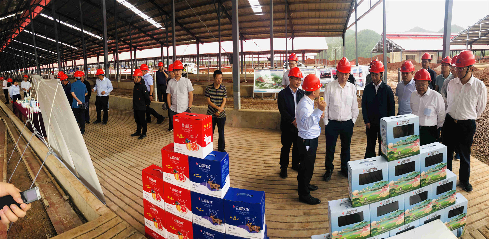 7月20日下午,中电建董事长晏志勇一行三十余位领导在剑川县委书记聂金辉、县长王远的陪同下,到我公司云端牧场参观调研万头奶牛及10万亩牧草种植产业扶贫项目推进情况。